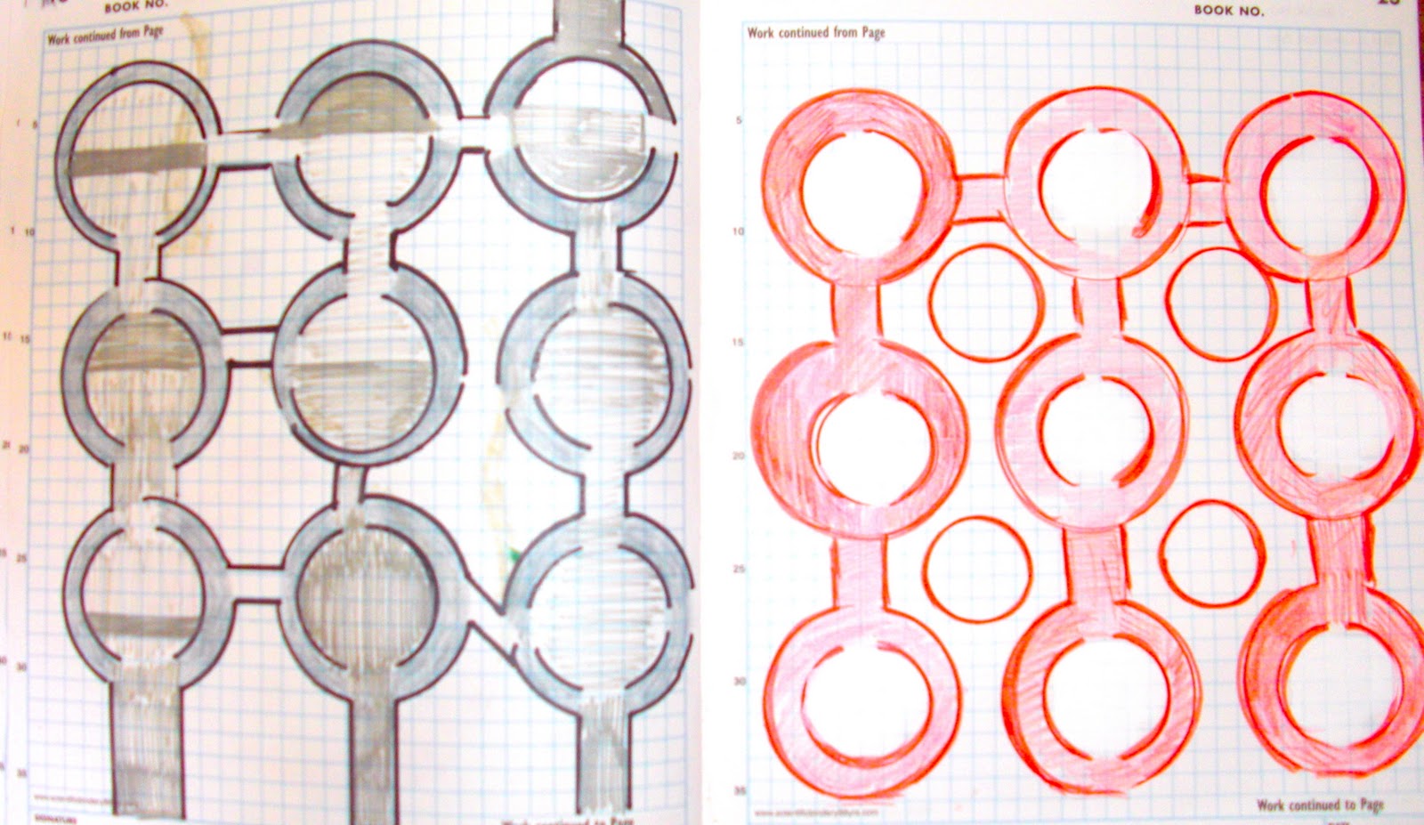 These particular sketches represent a majority of the January entries which have been showing up consistently throughout the visual diaries. The cylinder and circular forms. The impulse to play between circles and grid based content come and go.